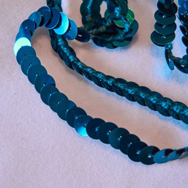 S118 Blue Iris Stretch Sequins Trim 27 yards – $10