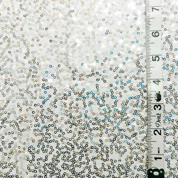 White/silver Zsa Zsa is a sequin embroidery design on a 4 way stretch circular knit. 92% Poly 8% Spandex. 425 / GLY 49/50″ wide.