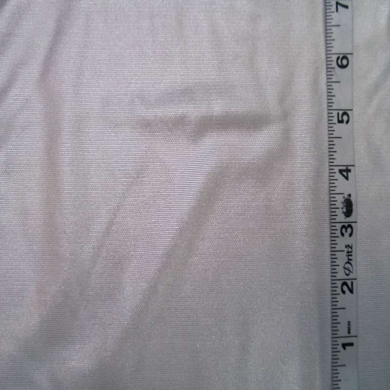 Silver Metal Mesh is a glossy foiled power mesh. It has a 4 way stretch and is 82% poly 18% spandex, 56/58″ wide.