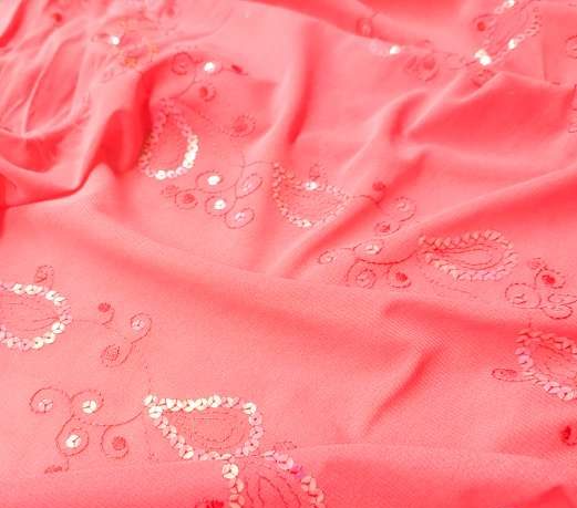 3F-113 Salmon Sequin Mesh Sequin Mesh has a 4 way stretch and is 46″ wide.