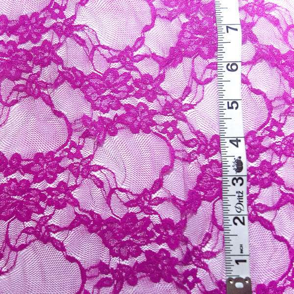 4G-103 Magenta floral lace has 4 way stretch. 90% Nylon 10% Spandex. 58/60″ wide.