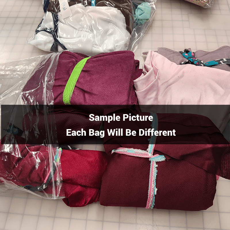 Surprise bags are 5 yards each. Fabrics in each bag will vary, some are bolt ends, some are dyed fabrics that had a spot or didn’t turn out the color we were going for, some may be fabrics that don’t sell and are close outs. Bags may contain continuous yards or a combination of cut pieces that equal 5 yards.