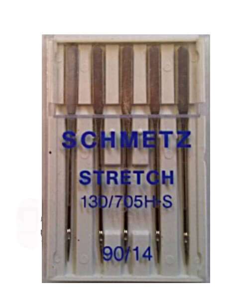 The medium ball point and specially designed eye & scarf help prevent skipped stitches and make this the perfect needle for knits, elastic or other stretch fabrics. System: 130/705 H-S. Size 14/90. 5 needles per pack.