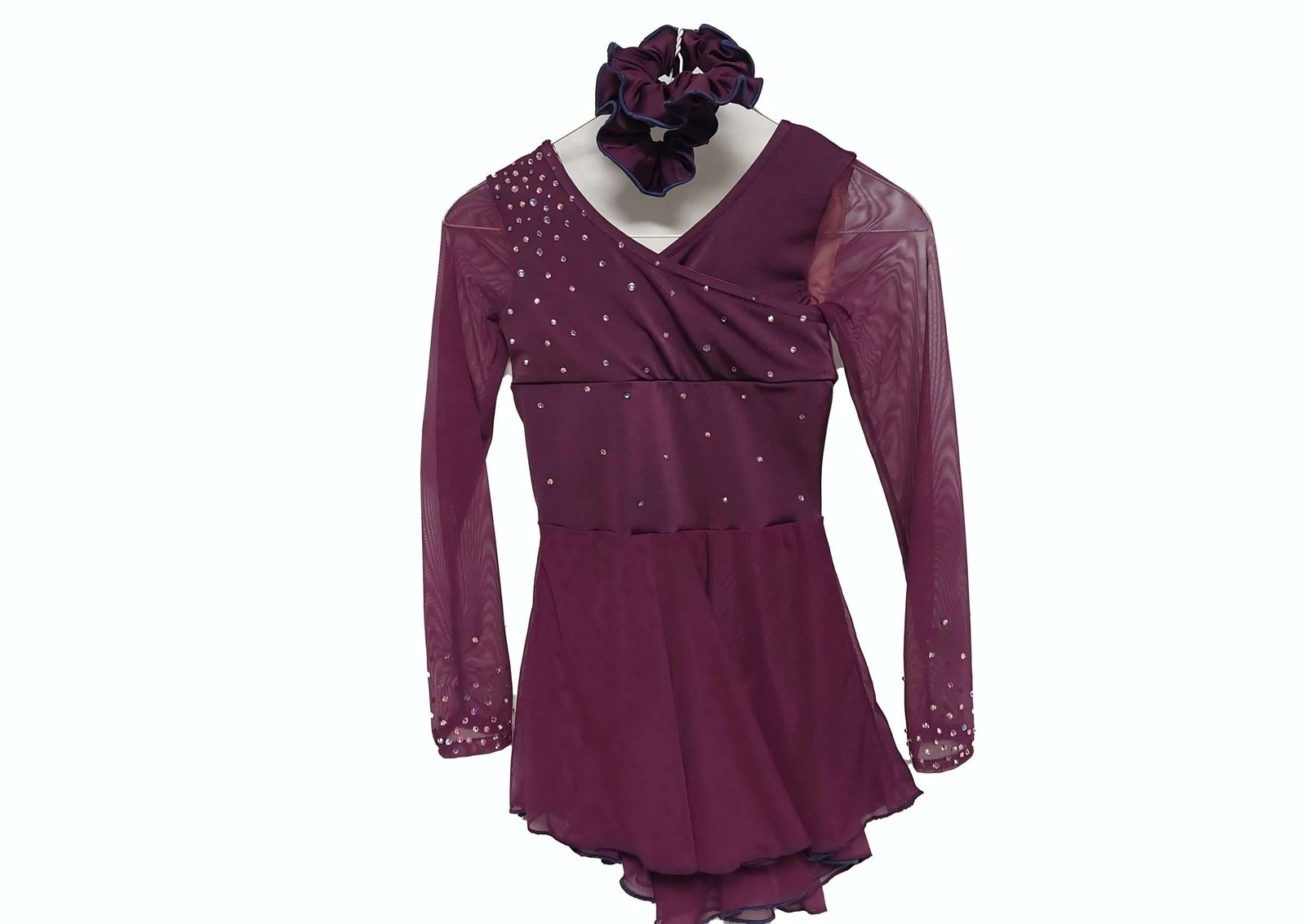 - Bodice is our 5O-106 Plum Tricot. Arms and skirt are out of our white mesh I dyed to match the plum.